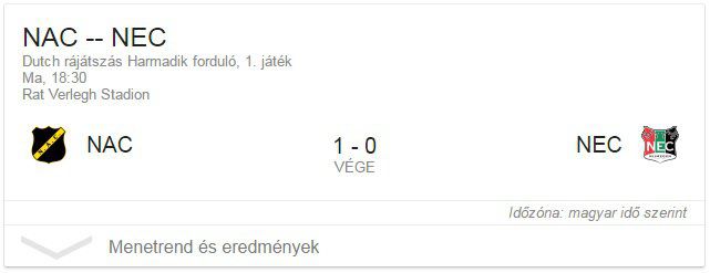Breda - NEC (Pontos végeredmény: 0-1, 1-0) Odds: 4,36 Nyert