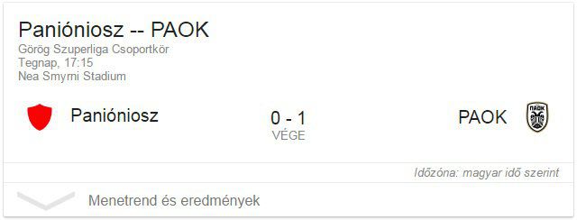 Panionios - PAOK (Pontos végeredmény: 0-1, 1-0) Odds: 4,77 Nyert