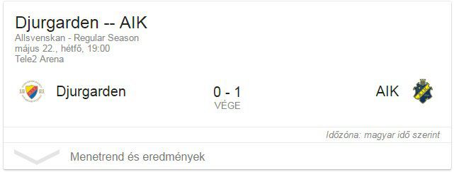 Djugardens IF - AIK Stockholm (Pontos végeredmény: 0-1, 1-0) Odds: 4,39 Nyert