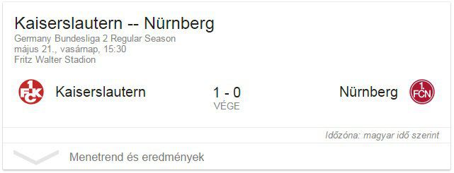Kaiserslautern - Nürnberg (Pontos végeredmény: 0-1, 1-0) Odds: 4,4 Nyert